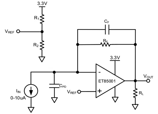 This structure allows you to measure low-level current signals with high precision. Because photodiode current is proportional to the incident optical power, stable amplification is critical. The ET85001 provides ultra-low input bias current of 5 pA and low input offset voltage of 0.4 mV, helping you maintain signal accuracy even at very small current levels.